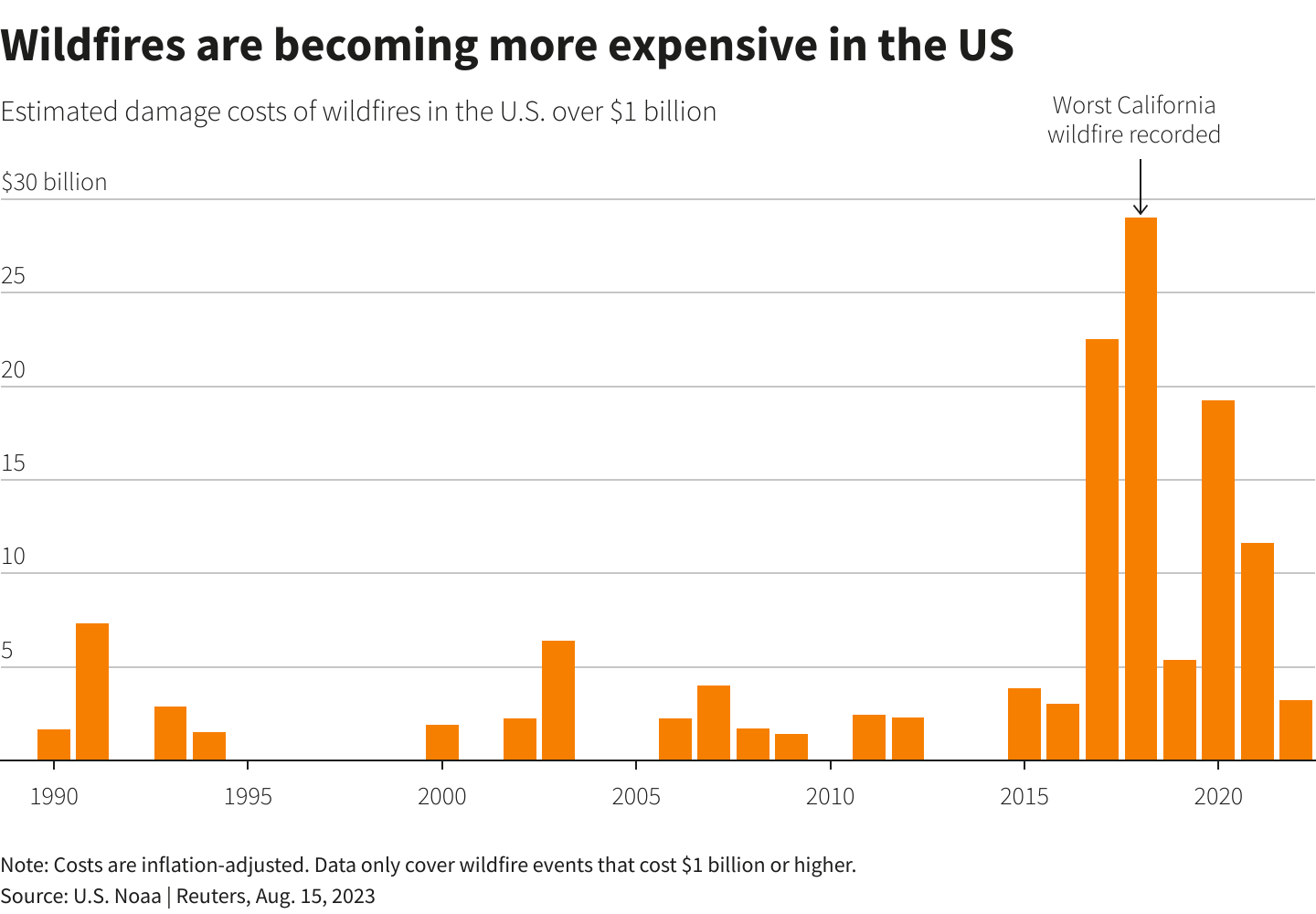 Looking forward to 2100, scientists have projected a “virtually certain” increase in the number of unusually warm and cold days and nights at the global scale and a “very likely” heatwaves. Also projected is a likely increase in the frequency of heavy precipitation and total rainfall, especially in high latitudes and tropical regions. The implications of extreme weather events are of great consequence, ranging from the preservation of life to human displacement and the economic impact of rebuilding after an event. For example, Hurricane Katrina displaced approximately 1 million people from the Gulf Coast region, some permanently, and the federal government spent approximately $120 billion on recovery efforts. Over the past several decades, in addition to the devastation experienced by affected persons and families, the cost of wildfire damages has often exceeded one billion dollars, adjusting for inflation.
