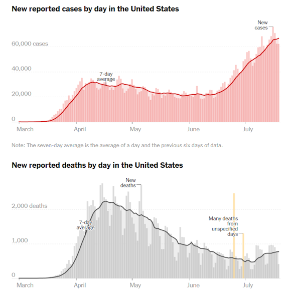 each day in mid-July and the US cases still have not peaked.